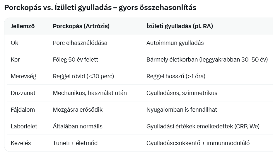 A pontos típus megállapításához (porckopás vagy gyulladásos forma) orvosi vizsgálat és képalkotó eljárás szükséges.